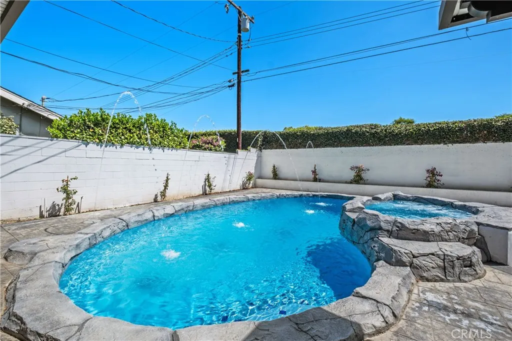 This stunning Fullerton home has been renovated with the finest materials and unwavering attention to every detail, so it feels luxurious yet inviting the moment you step inside. The showstopper new backyard beckons with a new pool with four fountains, spa, and a waterfall-firepit that elevates evenings to resort-level entertaining, while the updated bathrooms and gourmet kitchenwith abundant cabinetry, a striking marble island, and new appliances with warrantiesmake daily living a joy. Youll notice the bright, energy-efficient feel of new double-panel windows, copper plumbing, upgraded electrical, new flooring, and fresh paint, plus a tasteful accent wall that adds character and elegance. The open layout flows beautifully, with calming views from the living area to the backyard oasis and night-time magic with the four fountain and color-changing pool lighting that create a heartwarming, immersive atmosphere. Tucked on a quiet, tree-lined street in one of Fullertons most desirable neighborhoods, this 4-bedroom, 3-bath home offers over 2,109 sqft of timeless charm blended with modern luxury. The main level welcomes you with a cozy living room featuring a bay window and fireplace, a formal dining area, a main-floor bedroom with a full bath, and a convenient laundry room, while glass modern stair rails add a sleek contemporary touch. Upstairs, three more spacious bedrooms each with their office nooks and one or two walk-in closet. All bathrooms have been updated with high-end designer finishes. The outdoor space is an entertainers dream, a sunken firepit with a waterfall, a ra