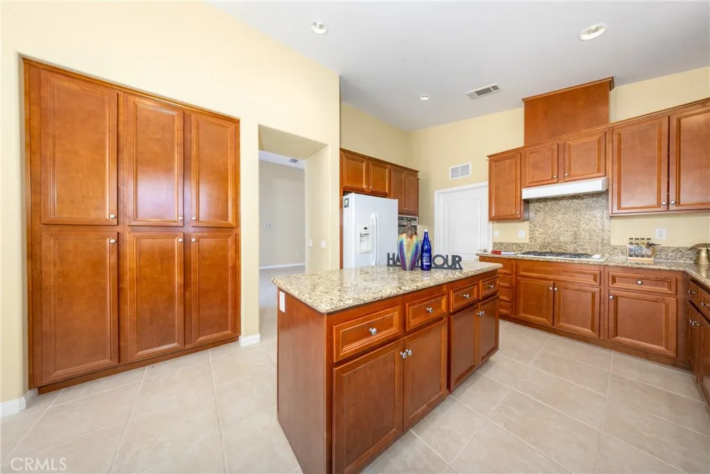 Welcome to this beautifully upgraded, move-in ready home in the prestigious 55+ Four Seasons community in Beaumont! Offering approximately 2,380 sq ft of living space on an expansive over 10,000 sq ft lot, this highly sought-after floor plan features 2 bedrooms, 2 bathrooms, and a versatile office. The spacious living room showcases high ceilings and a cozy fireplace, creating a bright, open, and inviting atmosphere throughout. The open-concept kitchen is designed for both style and function, featuring granite countertops, a gas stove, and a powerful range hoodperfect for everyday cooking and entertaining. It flows seamlessly into the living area and provides direct access to the stunning backyard garden. Step outside into your own private oasis, thoughtfully cultivated over several years. Enjoy a lush landscape filled with organic vegetables and more than 20 fruit treesperfect for a healthy, farm-to-table lifestyle. Relax among blooming flowers, listen to birdsong, and harvest fresh produce right from your backyard. Interior and exterior upgrades include tile flooring in the main living areas and bathrooms, wood flooring in the bedrooms and office, and elegant custom wood shutters throughout, added retaining wall for extra protection and covered backyard patio, the water heater, oven, and microwave were all recently upgraded 2025. Four Seasons community offers resort-style living in a guard-gated community featuring exceptional amenities: three pools (including an indoor heated pool), three fitness centers, three clubhouses, a library, dog park, and scenic walking trails,