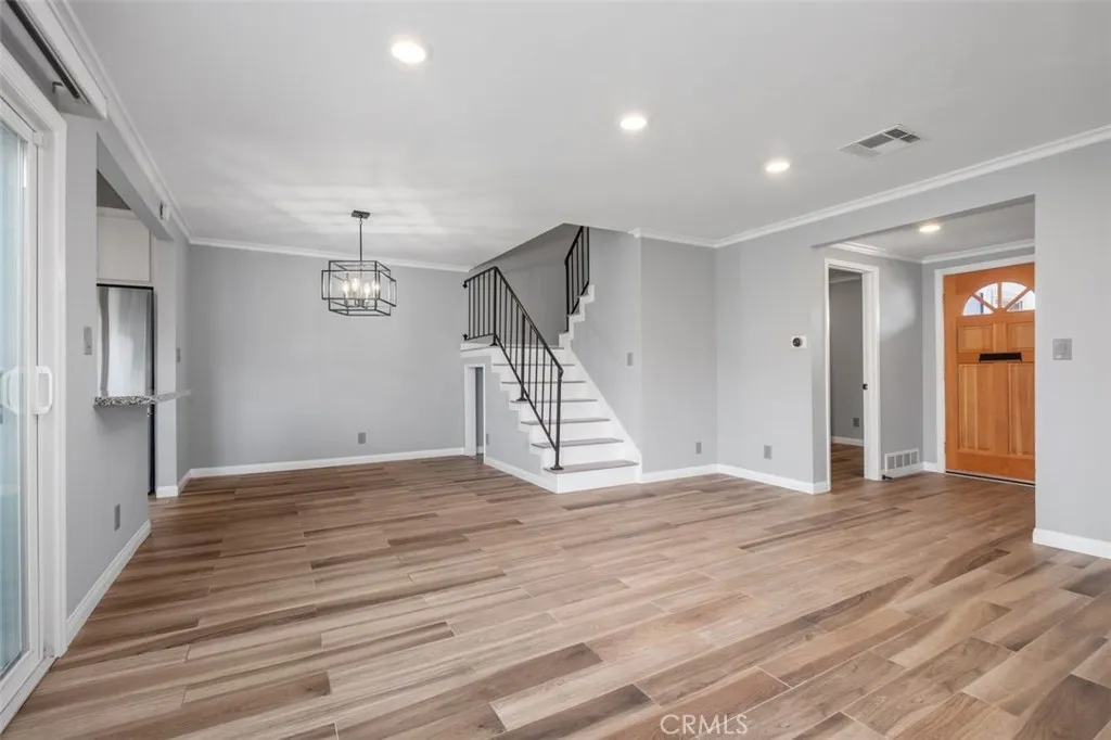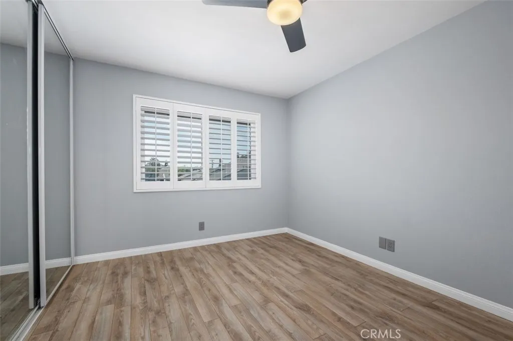 WOW! Another charming townhome located in the desirable Park Tustin community. This spacious residence features 4 bedrooms and 2.5 baths, along with one assigned parking space and a one-car garage, and is ready for immediate move-in. Enjoy the convenience of walking to the Enderle Center, offering a variety of restaurants, shops, a fitness center, and Citibank. The front yard is beautifully landscaped and provides direct access to the parking space and garage. A security door and updated entry door welcome you inside. The home opens to a bright living room with porcelain tile flooring throughout the main level and an open, inviting floor plan. Additional upgrades include newer vinyl windows and doors, accent lighting throughout the kitchen and living areas, and plantation shutters with upgraded blinds. The downstairs fourth bedroom includes an upgraded half bath and offers flexible use. The kitchen features porcelain tile flooring, a vinyl sliding door, and upgraded appliances including a dishwasher, stove, refrigerator, and microwave. An upgraded stairway leads to the second floor, where youll find three additional bedrooms and two full baths, along with accent lighting and ceiling fans. All interior doors are custom. The primary bedroom includes vinyl windows and flooring, along with an upgraded bathroom featuring a new vanity, toilet, and shower. This well-maintained home combines comfort, style, and a prime location in Park Tustin.