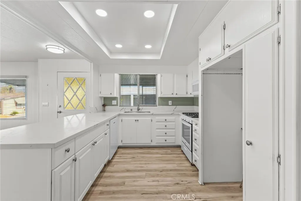 Owner financing available. First months space rent covered (buyer to verify terms). Welcome to this updated 2-bedroom, 2-bath manufactured home located within the 55+ Colonial Country Club community. Positioned in an interior location, this approximately 1,344 sq. ft. home offers a spacious layout, natural light, and recent improvements throughout. Inside, the home features an open living and dining area with updated flooring, fresh interior paint, and large front windows that provide natural light. The kitchen includes quartz-style countertops, a peninsula with bar seating, recessed lighting, updated fixtures, and ample cabinetry. A built-in hutch provides additional storage and display space. Both bedrooms offer comfortable layouts with updated lighting and ceiling fans. The primary suite includes an en-suite bathroom with an updated vanity, extended counter space, and a walk-in shower. The exterior features multiple patio areas with mature landscaping, including citrus trees and planting areas. Covered side patios provide shaded outdoor space for seating or gardening. Additional features include dual covered carports, low-maintenance landscaping, and access steps with railings. Colonial Country Club is a 55+ community offering amenities including a golf course, pool, spa, fitness center, clubhouse, and additional recreational facilities. Located near shopping, dining, and major transportation routes.
