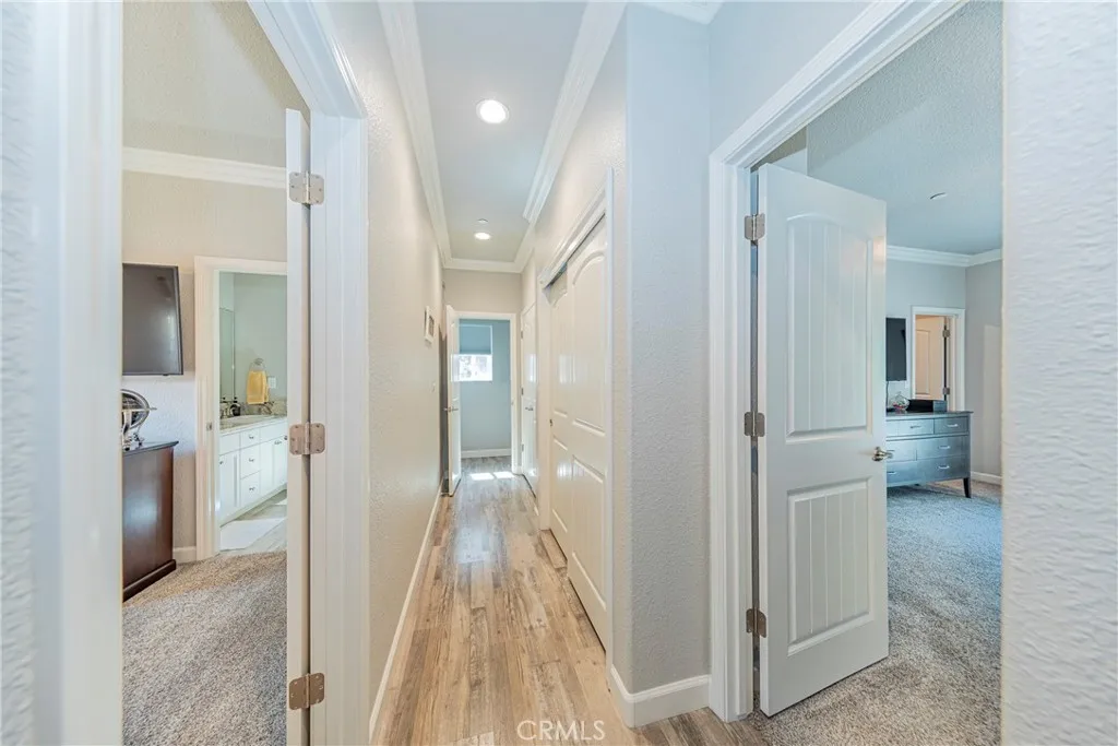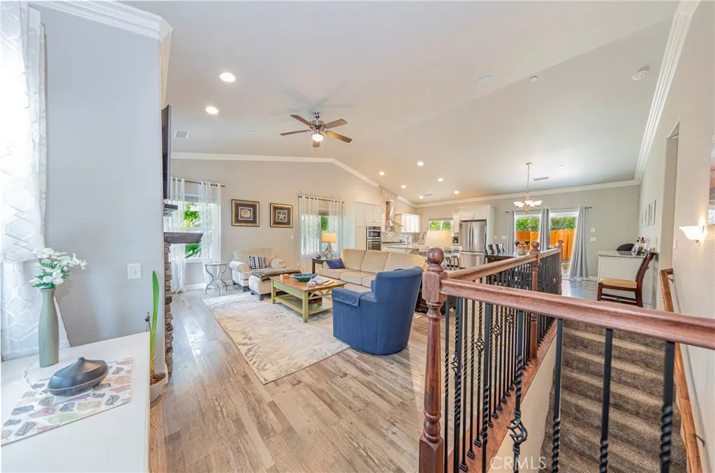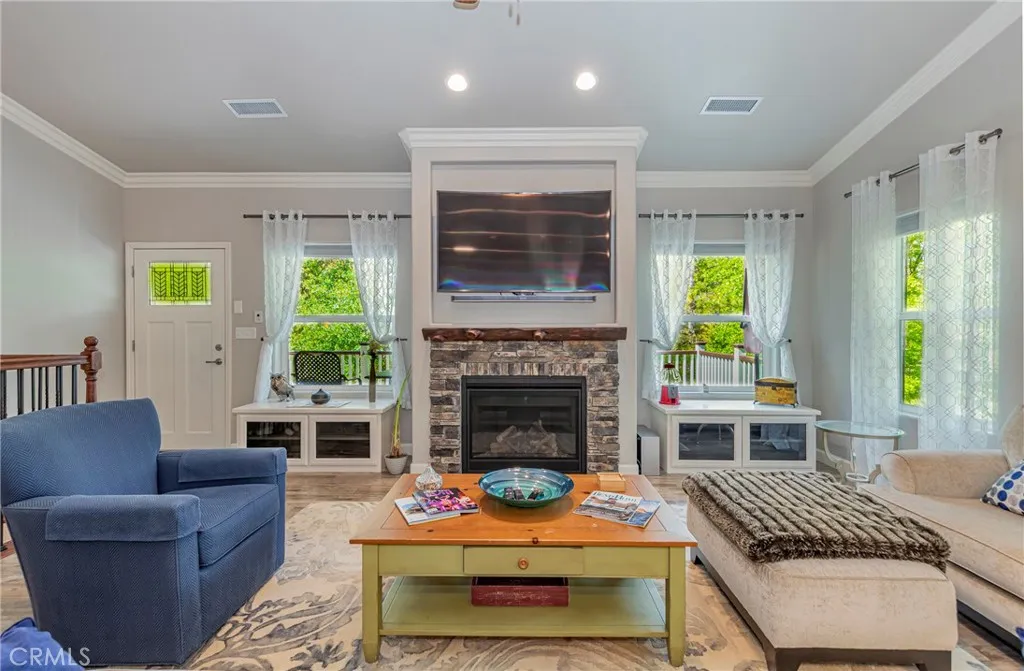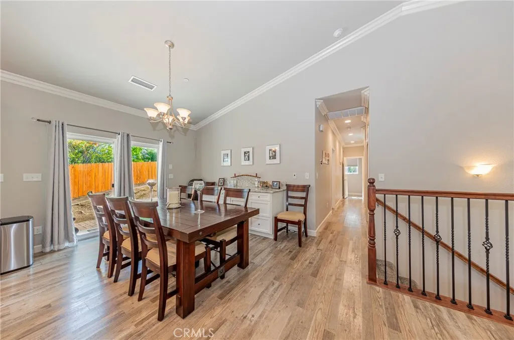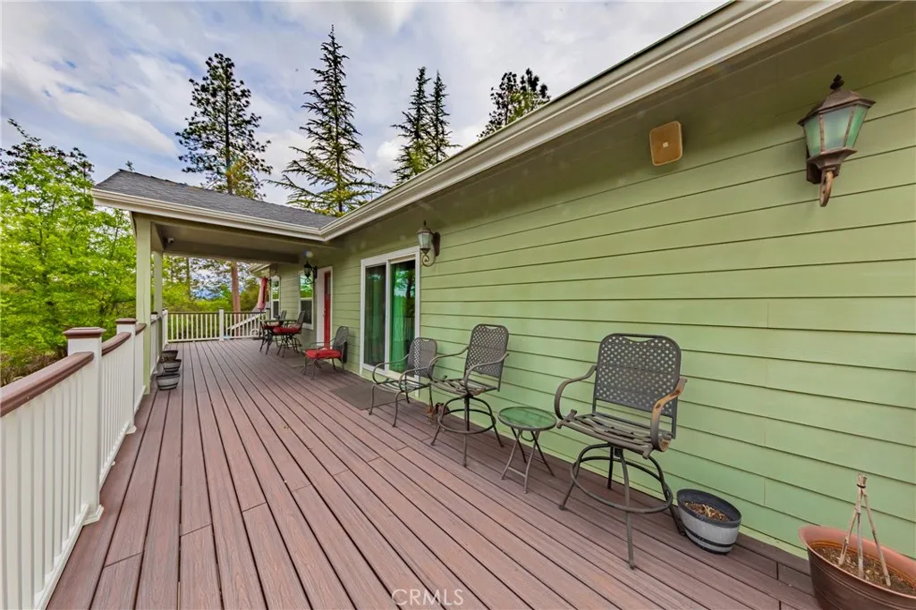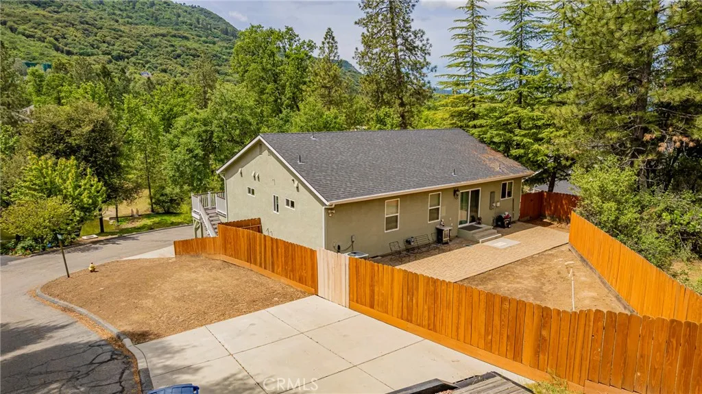 Welcome to your ideal mountain retreat! This stunning 2425 sq. ft. custom-built home, completed in 2018, offers beautiful mountain and community pond views in the heart of Oakhurst, CA. Thoughtfully designed with three bedrooms each featuring its own en-suite full bath plus an additional half bath for guests, the home blends comfort, privacy, and upscale living. The main living area upstairs showcases soaring vaulted ceilings, elegant crown molding, and a cozy fireplace framed by custom-built window benches. A fully integrated sound system is hardwired throughout the home, delivering premium audio in every room, along with a high-tech security system for added peace of mind. The modern kitchen is both stylish and functional, featuring crisp white cabinetry, upgraded custom granite countertops, and a deep farmhouse sink. The expansive island includes a vegetable sink, built-in wine refrigerator, and bar seating perfect for entertaining. The open-concept layout flows seamlessly into the dining and living areas, highlighted by a built-in credenza for additional storage and display. The 950 sq. ft. lower level offers excellent flexibility for guests or multi-generational living, complete with a private bedroom, full bath, family room with recessed lighting, and a convenient butler's kitchen. Additional highlights include a four-car deep garage with EV charging capability, RV parking, and dual driveways. The home is being sold with everything, fully furnished, TVs, sound and security systems, with the exception of the pool table and personal photos making it truly move-in ready.