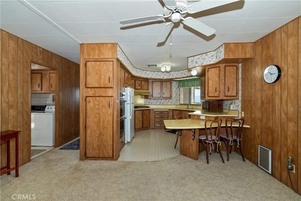 One of the best sought after locations in the park with beautiful city lights view. Double wide in good condition offering 2 bedrooms, 2 bathrooms, Formal living and dining room, nice tv room area off kitchen and eat in bar in kitchen. Park is beautifully landscaped with great pool areas, beautiful serene walking trails with Koi fish in stream, Rec room, etc. Has a detached shed great for storage, plus the unit itself has lots of storage with a large primary bathroom and extra large laundry room. Room to park 3 cars off street.